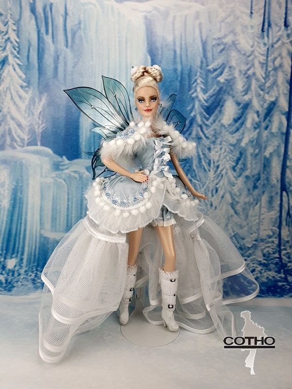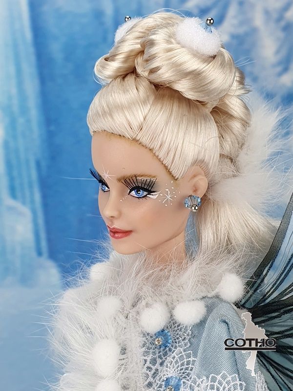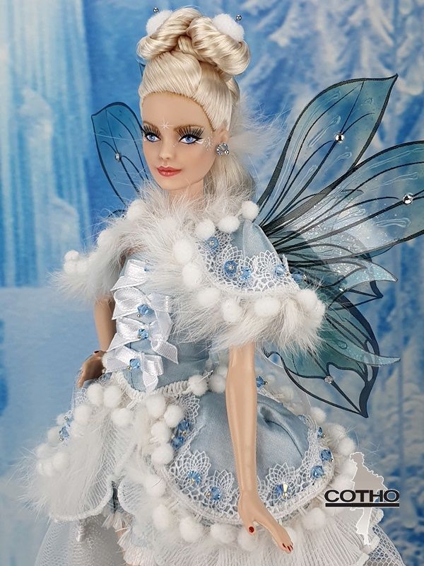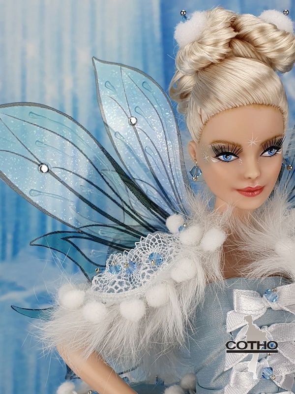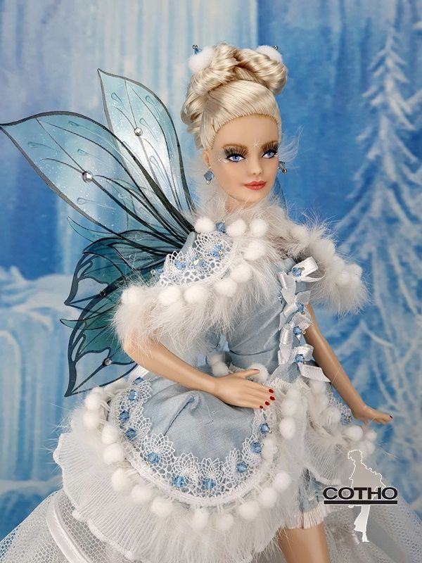 I was inspired by the blue sky and the whiteness of the snow for this fairy, and the power she has to protect the human being who believes in her.