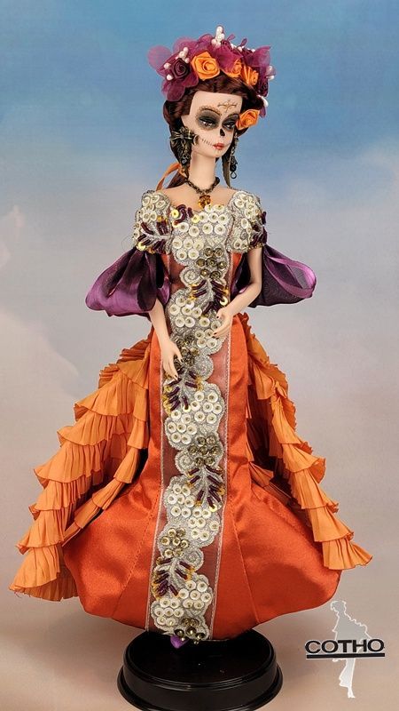 Marisol incarne une fusion audacieuse entre tradition mexicaine et élégance contemporaine, une poupée haute couture pièce unique qui célèbre la vie et la mémoire à travers une esthétique raffinée et des détails artisanaux d’exception.
